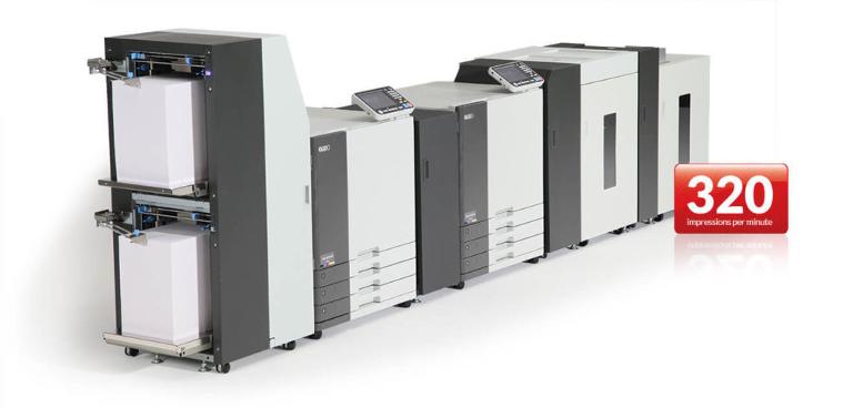 - Kapasitet på opptil 19.200 print pr time (9.600 sider pr time)