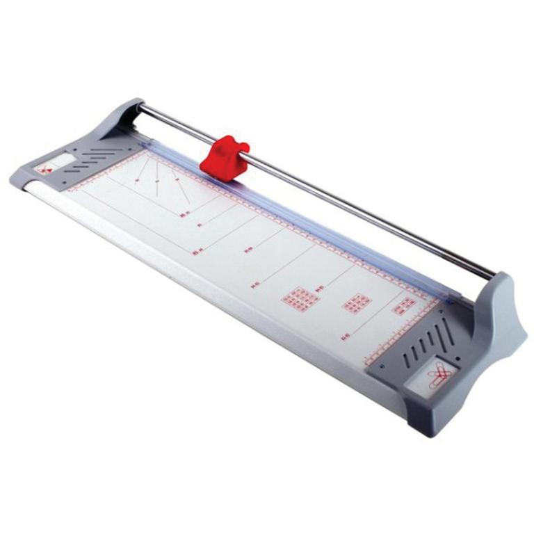 Høykvalitets papirtrimmer bygd med solide materialer og som har selvslipende kutteblad. Bordet viser alle standard formatene så kuttingen skal kunne utføres presist og enkelt.